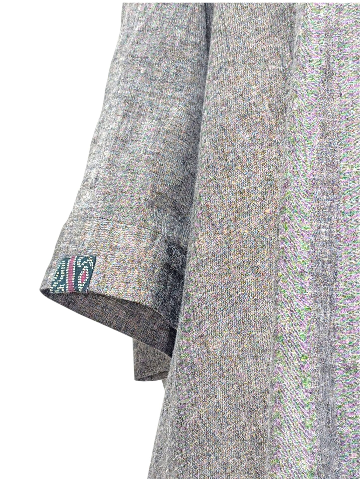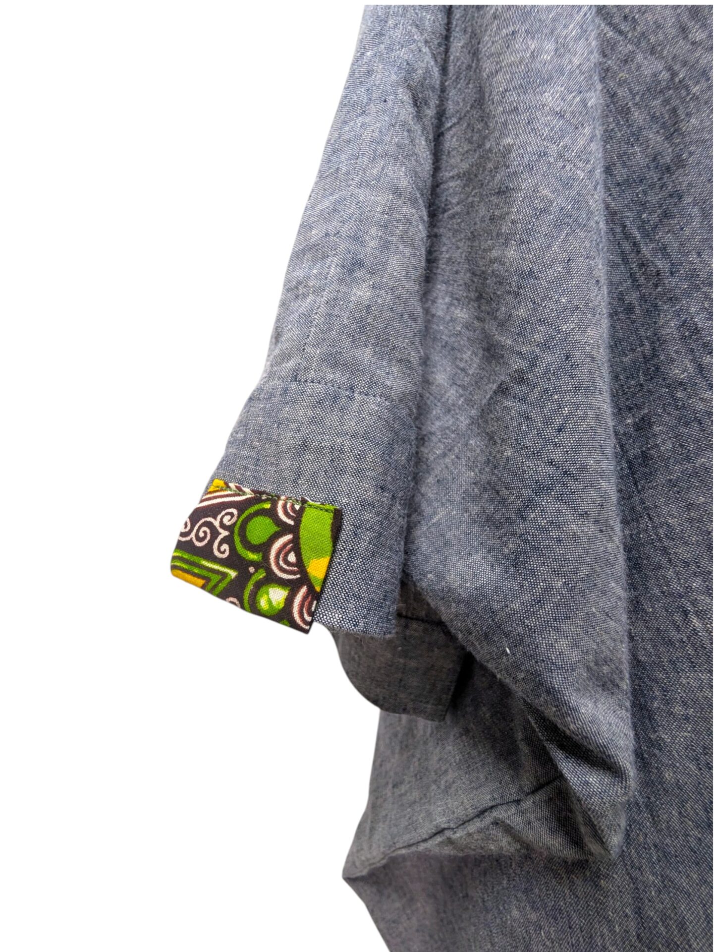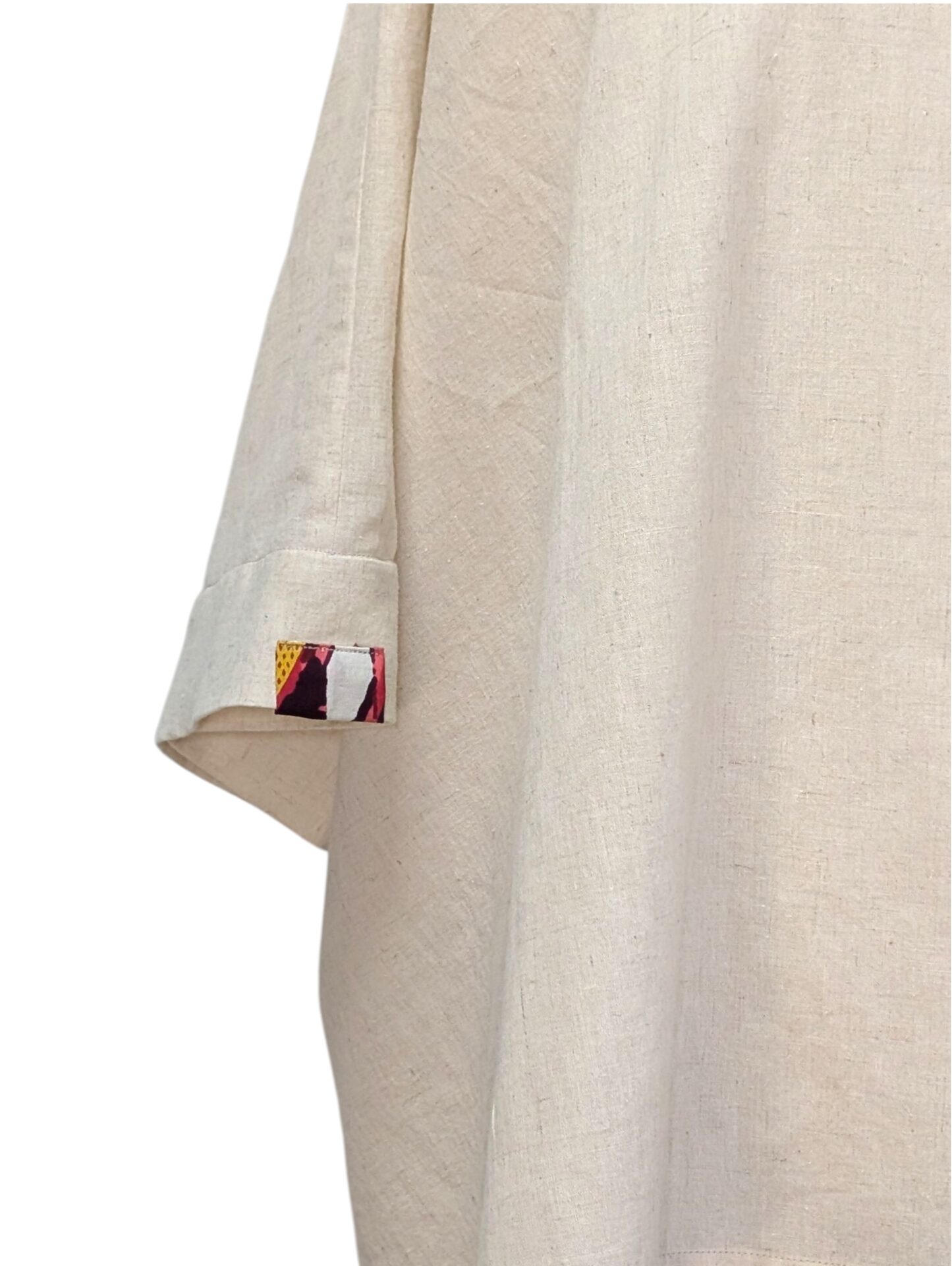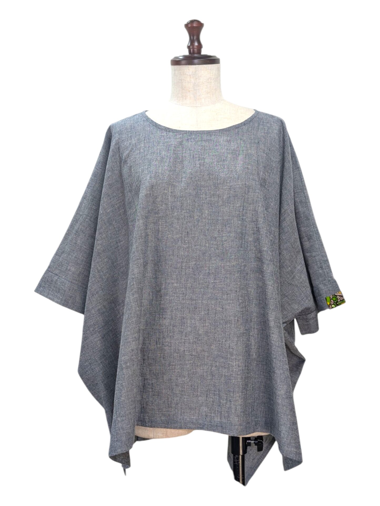 風と共に生地がなびき、ワンポイントの生地が日常のコーディネートにさりげないアクセントを加えます。